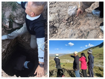 科考队一行首先走访当地文化旅游广播电视局文物科,并与文旅局俄金主任进行了详细访谈,随后到香达镇青土村地区吐蕃墓群进行了实地调查,深入了解该地区吐蕃时期的墓葬结构、随葬品特征以及与周边文化的交流互动情况,为下一步深入系统该地区历史人类活动方式奠定了基础。